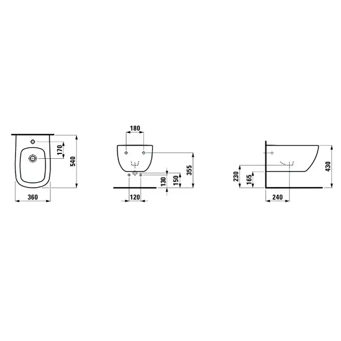 Laufen Palomba Биде подвесное 540х360х265мм с 1 отв. под смеситель, цвет: белый