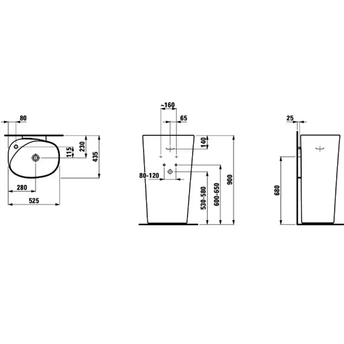 Laufen Palomba Раковина 52.5х43.5х90 см, без отв., напольная, цвет: белый