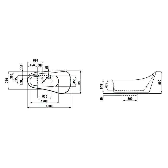 Laufen Palomba Ванна 1800x890x540мм, свободностоящая, из материала Sentec, со сливом-переливом, цвет: белый