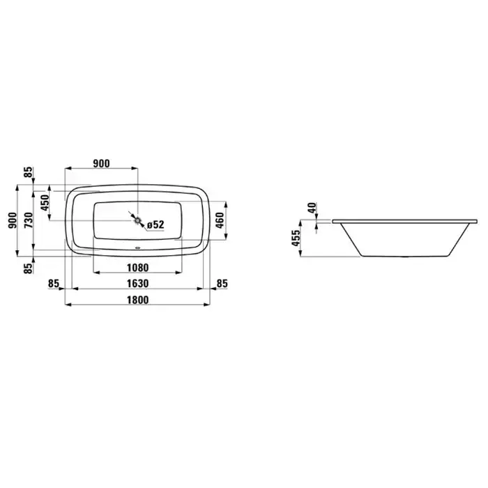 Laufen Palomba Ванна 1800x900x455мм, встраиваемая, без слив-перелива, материал: акрил, цвет: белый