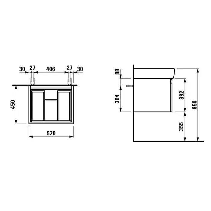 Laufen Pro A Шкафчик под раковину, 520x450x390 мм, 1 внутр.ящик, включает в комплект орган. для ящика, совместим с раковиной 818952, белый матовый