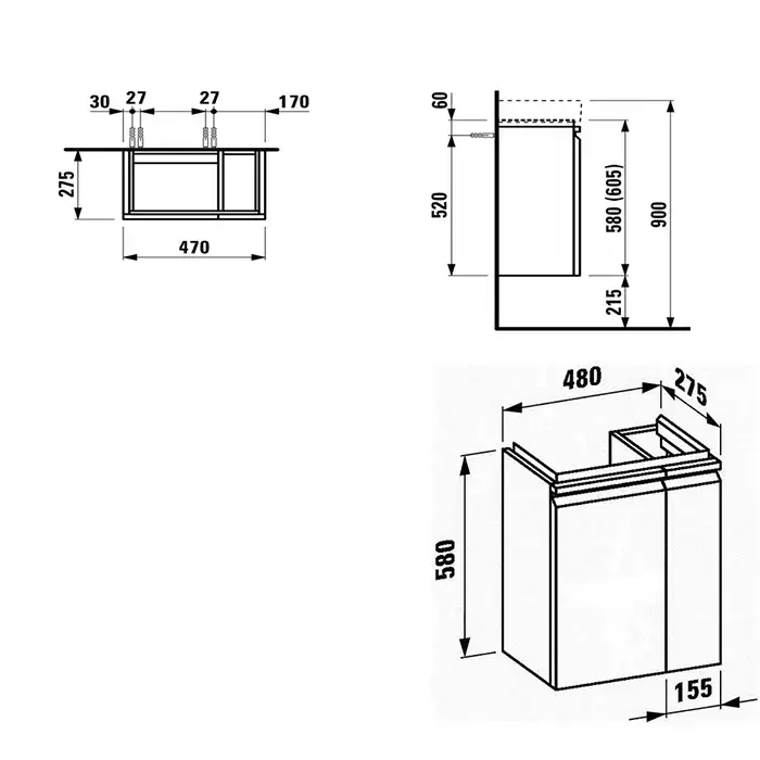 Laufen Pro База под раковину 8.1595.5, подвесная 47х27,5х60,5 см, петли слева, полки справа, 1 дверка, цвет белый глянцевый