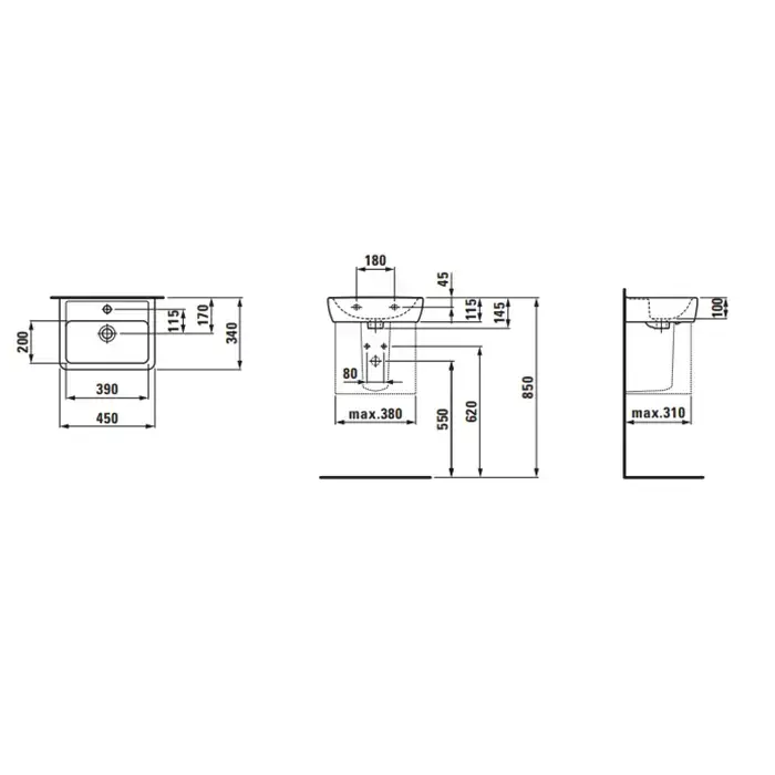 Laufen Pro Раковина мини 45х34х11,5 см,подвесная/накладная с 1отв., c переливом, цвет: белый