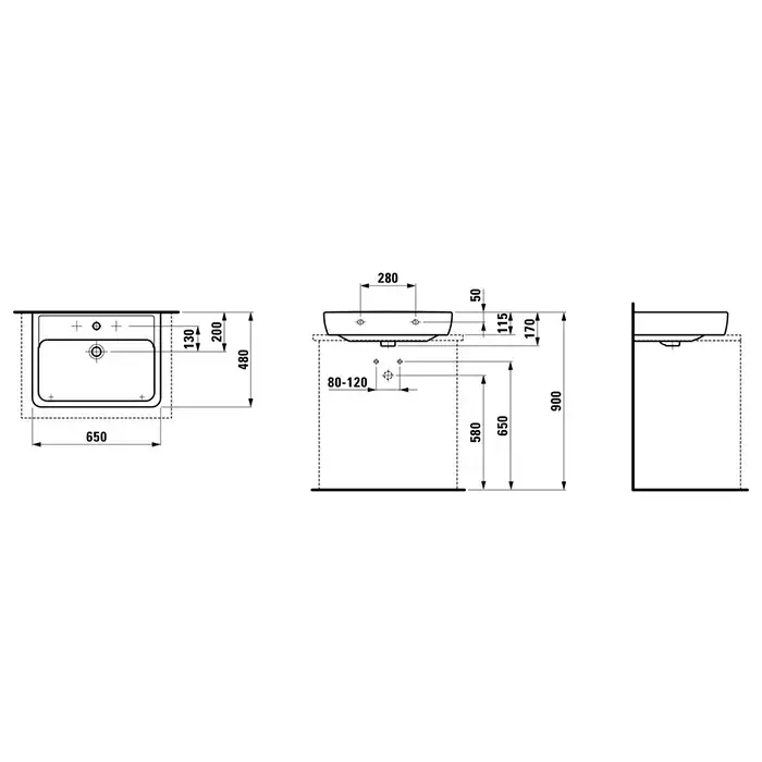 Laufen PRO S раковина для установки на поверхность, 650x480x115 мм, отверстие для смесителя по центру, белый