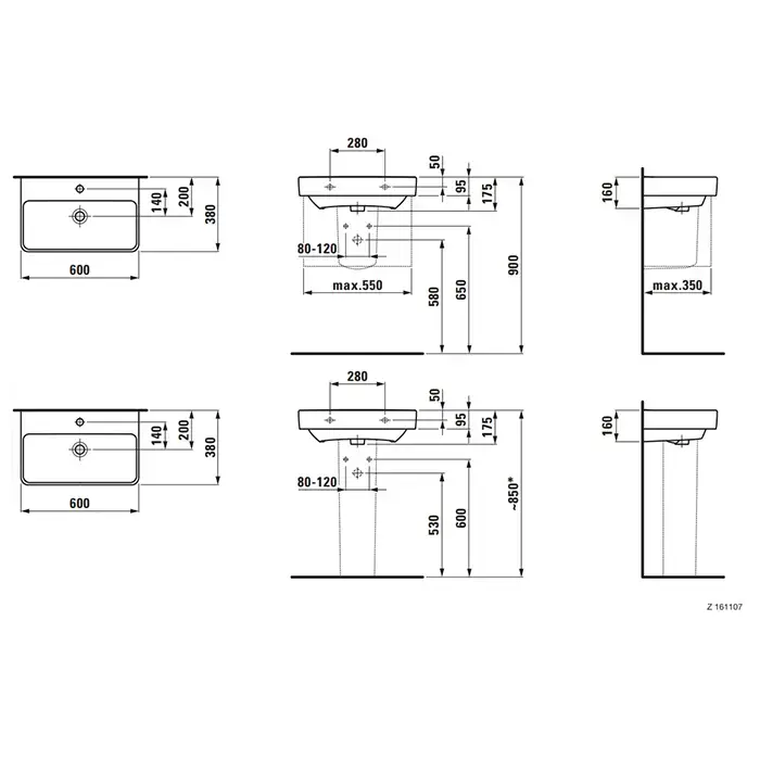 Laufen Pro S Раковина 60х38 см, без отв. для смесителя, цвет белый