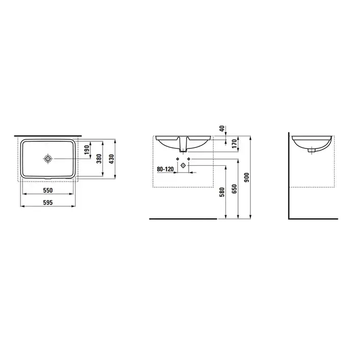 LAUFEN Pro Раковина встраиваемая снизу 59,5х43х17 см, без отв под смеситель,необраб. край, цвет белый
