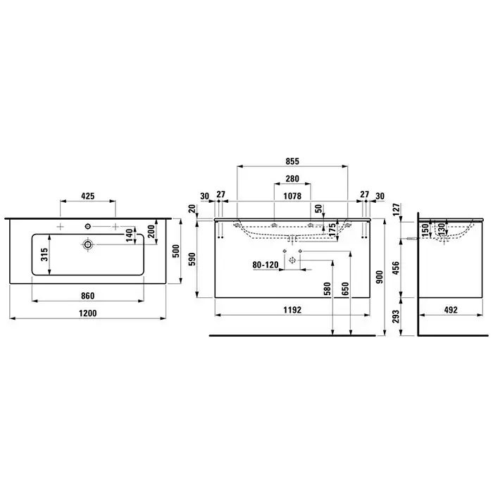 Laufen Pro S Комплект, раковина и база 120x50x61см, с 2 ящиками с мех. push-and-pull, цвет: белый матовый
