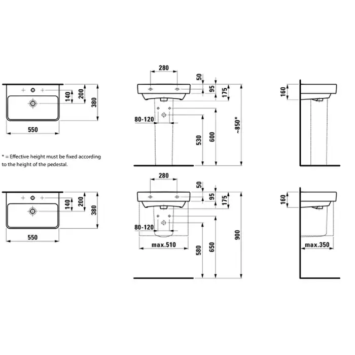 Laufen Pro S Раковина55х38х9,5 см,подвесная/накладная без отв. под смеситель, c переливом, цвет: белый