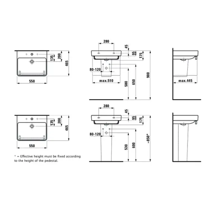LAUFEN PRO S Раковина 550х46.5х95 мм., подвесная/на столешницу, с 1 отв для смесителя, с переливом, цвет белый