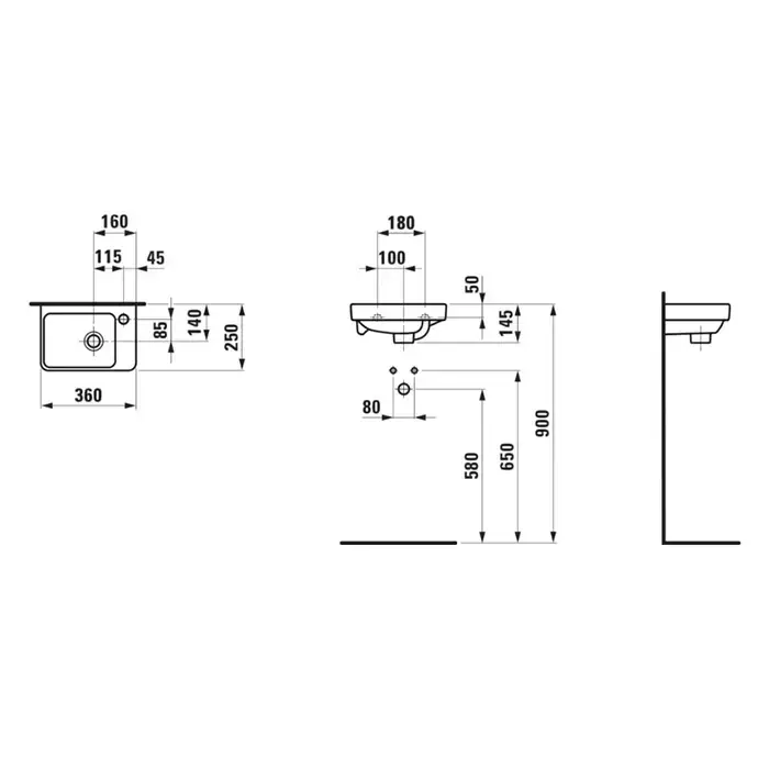 LAUFEN Pro S Раковина мини 36x25 см асимметричная без отв. для смесителя , цвет белый