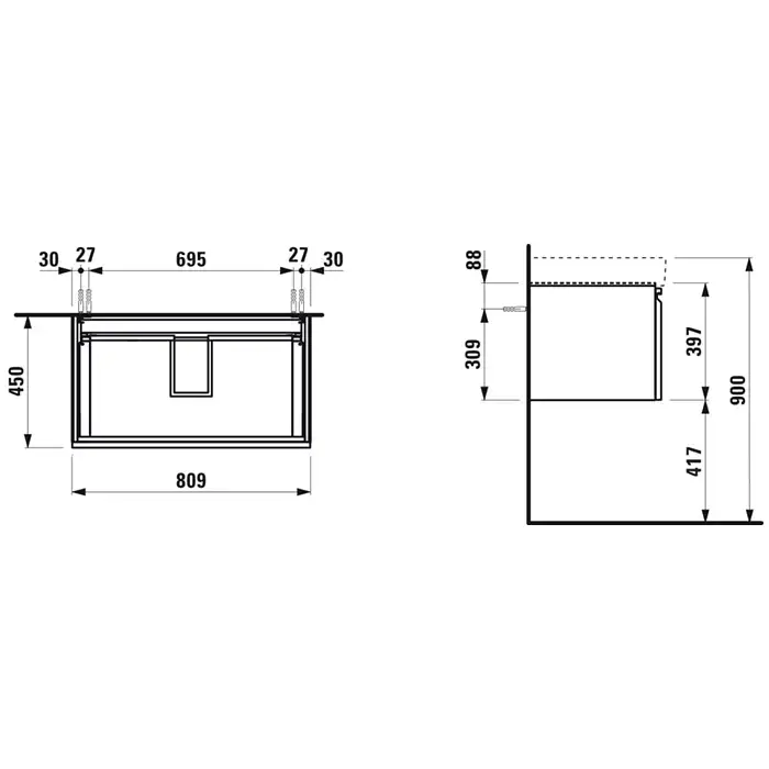 LAUFEN PRO S Тумба под раковину 813965, 810х450х390мм, подвесной, 1 выдвижн ящик,1 внутр ящик с органайзером, цвет белый матов