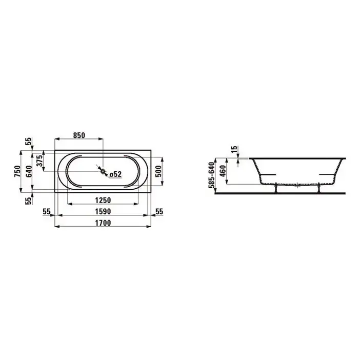 Laufen Pro Ванна 170x75 Drop-in прямоугольная, с ножками , без слива-перелива, материал Marbond, белая