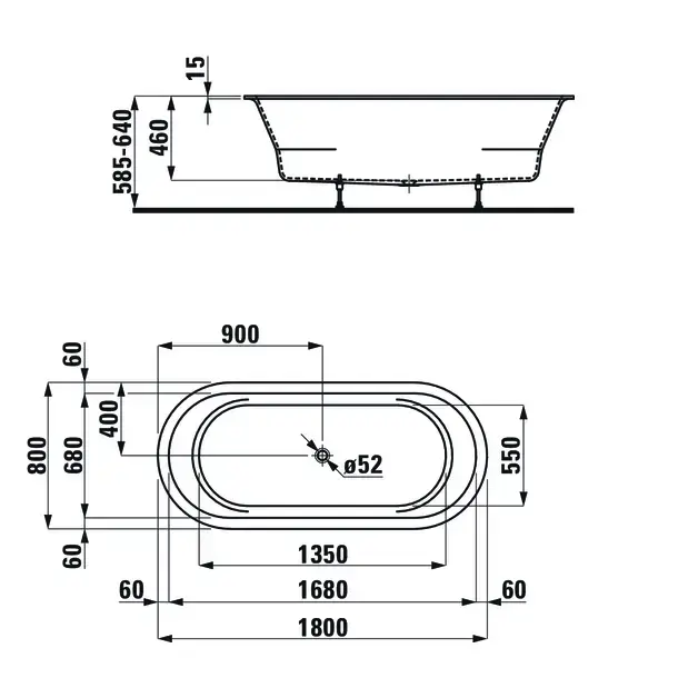 Laufen Pro Ванна встраиваемая, 180х80х64см, овальная с ножками , без слива-перелива, цвет: белый
