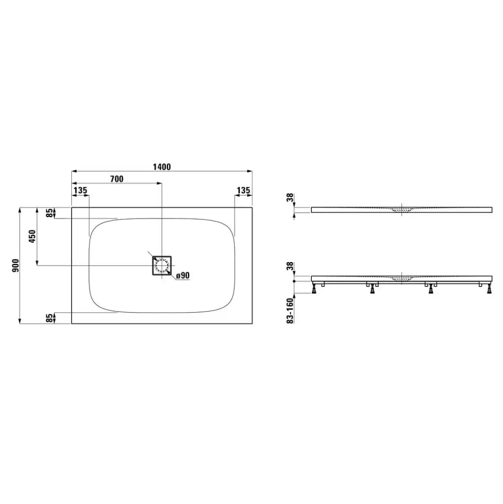 Laufen Solutions Поддон прямоугольный ультратонкий , из материала Marbond 1400х900х38 мм, d90мм, цвет: белый