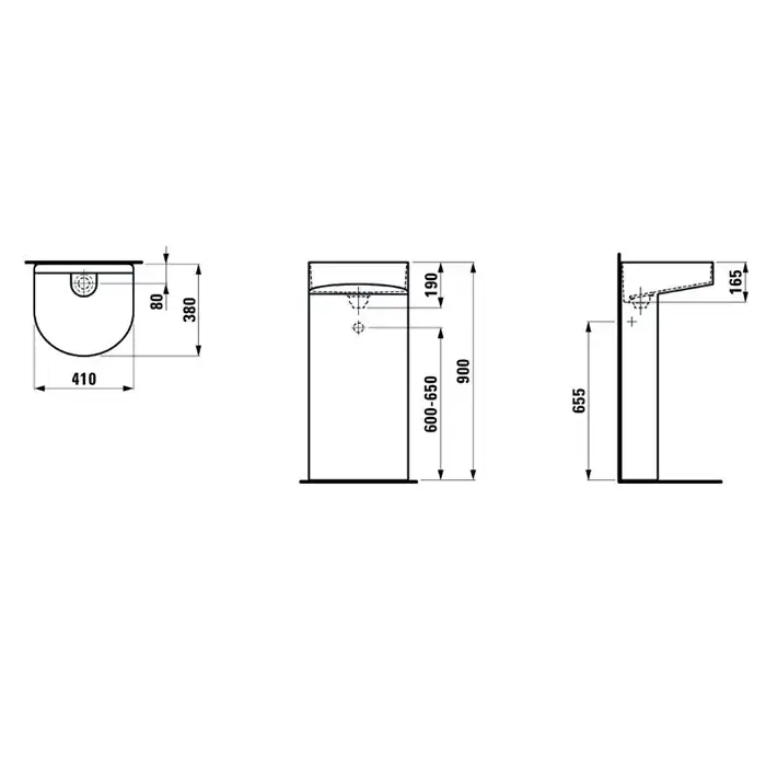 Laufen Sonar Раковина с пьедесталом 410х380х900мм без перелива, без отв. под смеситель, напольная, крепл. к стене, цвет: белый
