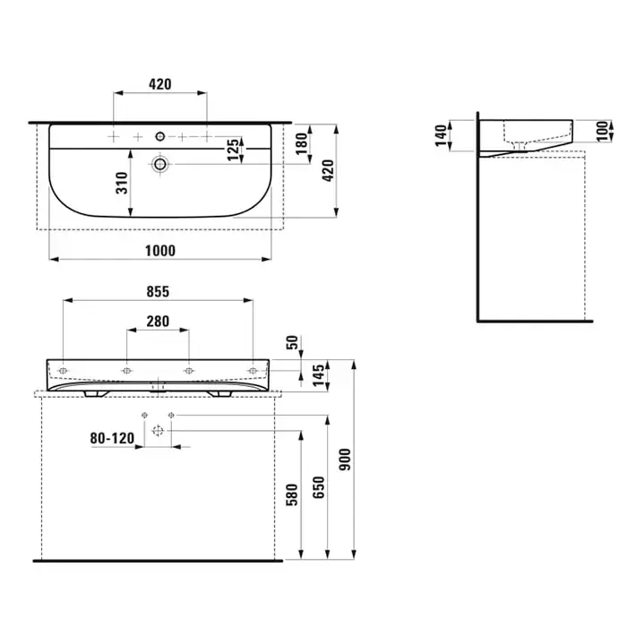 Laufen Sonar Раковина 100x42x14см., накладная, 1 отв., цвет: белый