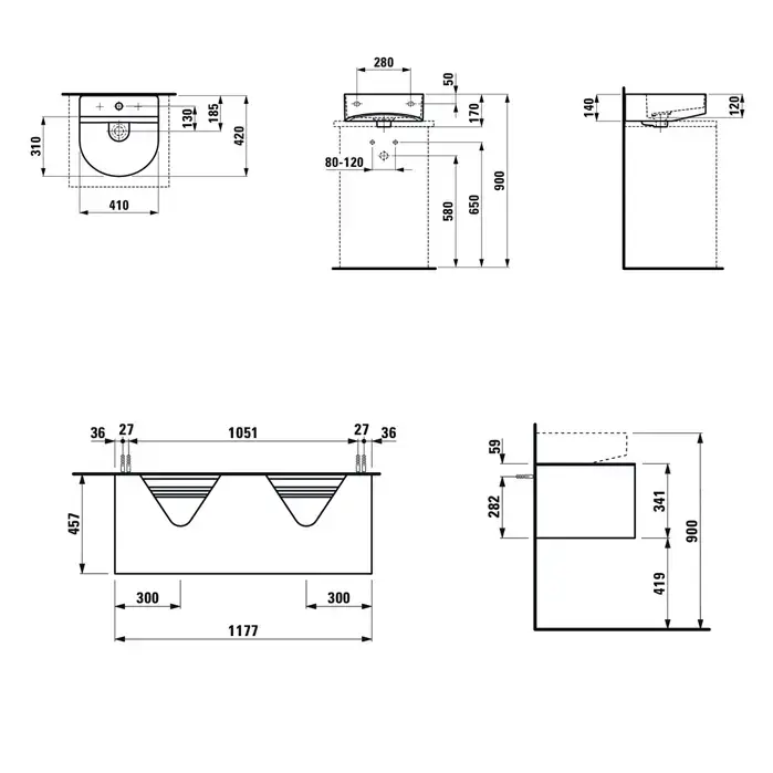 Laufen Sonar Раковина 100x37х13 см, без отв., двойная, без перелива,с наружным декором, цвет: белый