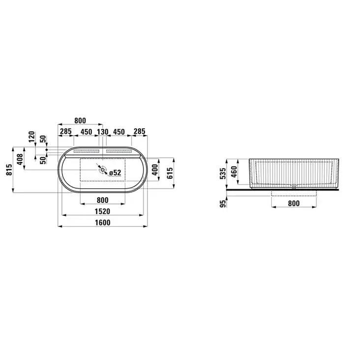Laufen Sonar Ванна 1600x815х460мм, пристенная, с слив-переливом, материал: Marbond c рельефом, итегрированный перелив, цвет: белый