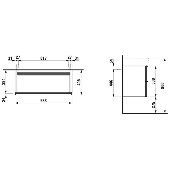 Laufen Space База под раковиной 93.5х41х52см, с 2 ящиками, без сифона, подвесная, покрытие LLC, цвет: темный вяз
