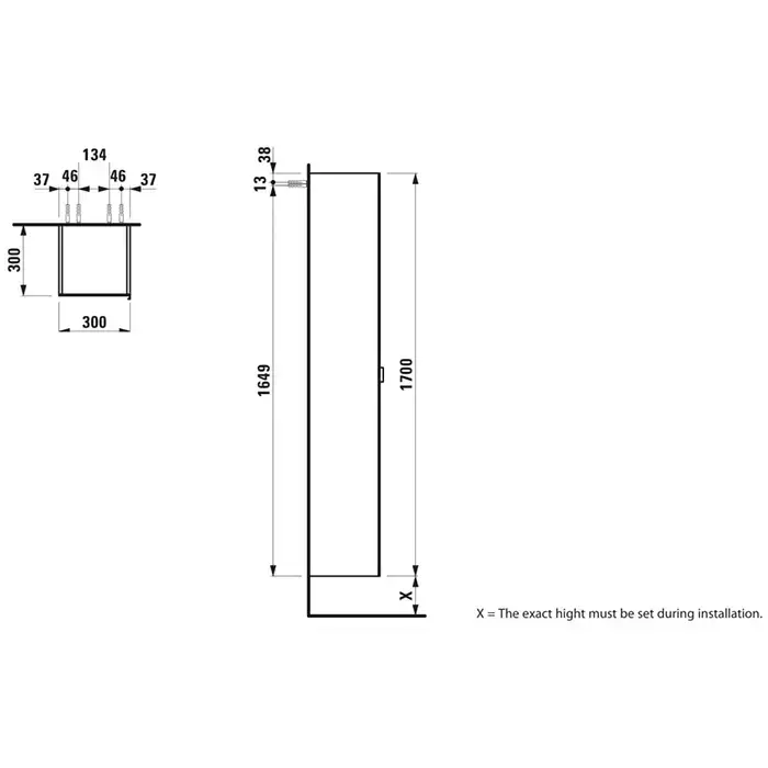 Laufen Space Шкаф высокий с фронтальным зеркалом 300x300x1700 мм, петли слева, белый матовый