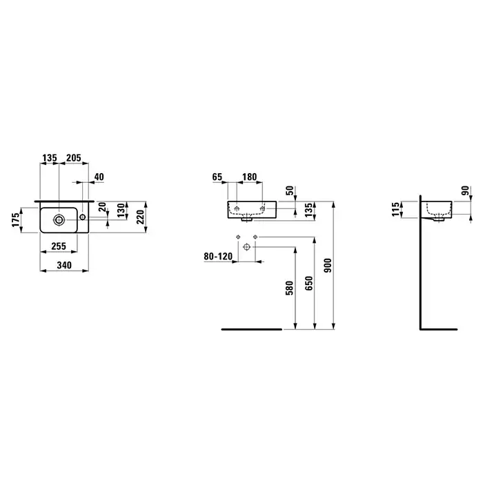 Laufen VAL Мини-раковина, полка справа, 340x220x115 мм, отверстие для смесителя,справа, белый