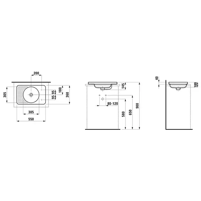 Laufen Val раковина врезная 550х360, без отверстия для смесителя, без перелива, SaphirKeramik, цвет белый