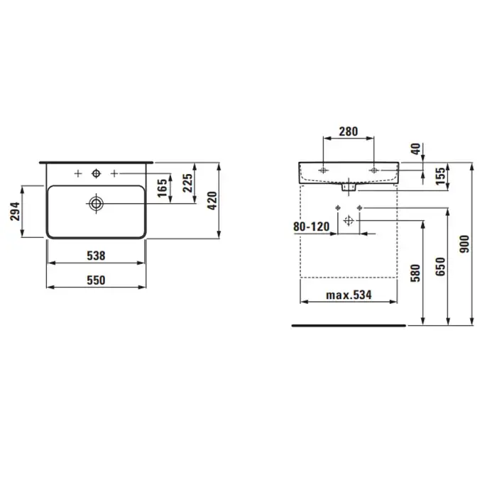 Laufen VAL Раковина 550х420мм без отв. под смеситель, цвет: белый (ВРЕМЕННО не поставляем!)