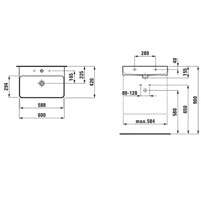 Laufen VAL Раковина 600х420х115мм без отв. под смеситель, цвет: белый (по запросу!)