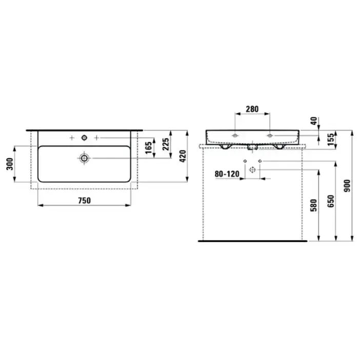 Laufen VAL Раковина 120х42х11.5 см, 2 отв., цвет: белый
