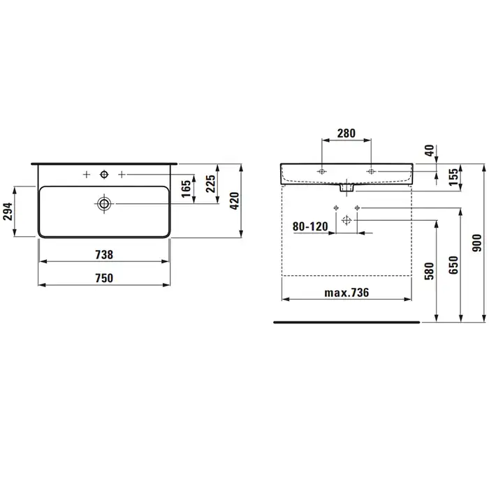 Laufen VAL Раковина 750х420х115мм без отв. под смеситель, с покр. LLC, цвет: белый