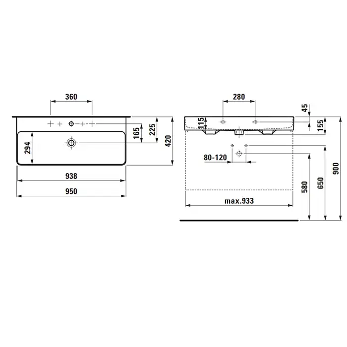 Laufen VAL Раковина 950х420х115мм с 1 отв. под смеситель, с покр. LLC, цвет: белый