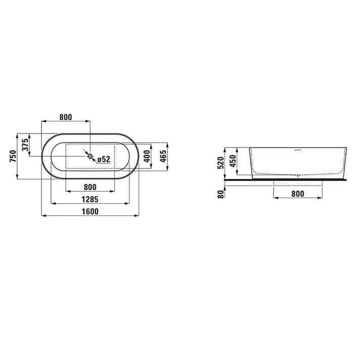 Laufen VAL Ванна 1600x750x450мм, свободностоящая, с слив-переливом, материал: композит, цвет: белый