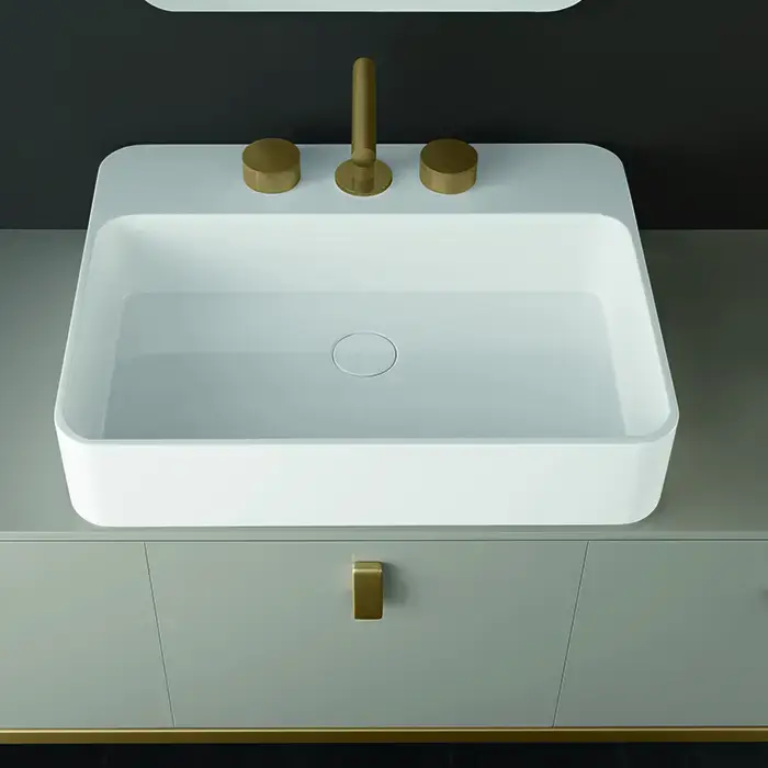 VITAGE milldue edition Раковина BEND 604х472х120 мм, без перелива, 3 отверстия для смесителя, Ceramilux, с донным клапаном, цвет белый глянцевый
