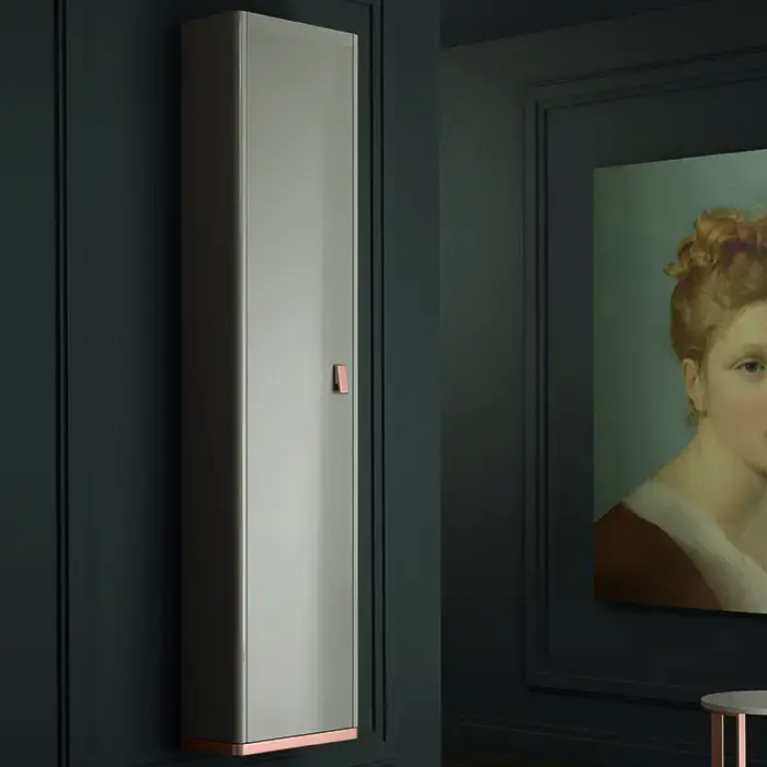 VITAGE milldue edition Tailor Шкаф-пенал 360х230х1800 мм., подвесной, левый, ручка матовое розовое золото, цвет глянцевый Argilla