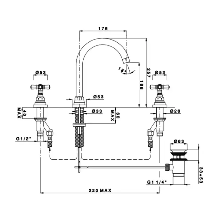 Nicolazzi Agora Смеситель для раковины на 3 отв. излив 176 мм, без донного клапана, цвет ЧЕРНЫЙ МАТОВЫЙя