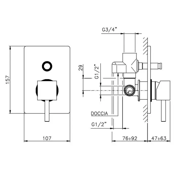 Nicolazzi Antelao Смеситель для душа на 2 отверстия, настенный, вывод сверху 3/4", цвет: хром