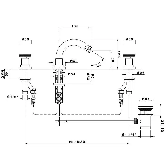 Nicolazzi Arena Смеситель для биде на 3 отвертсвия, излив: 135 мм, цвет: хром