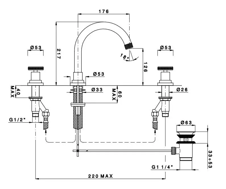 Nicolazzi Arena Смеситель для раковины на 3 отверствия, с донным клапаном, излив: 176 мм, цвет: хром