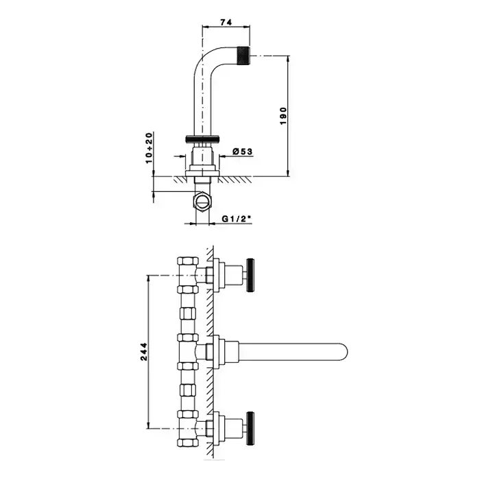 Nicolazzi Arena Смеситель для раковины настенный на 3 отверстия, излив: 190 мм, цвет: хром