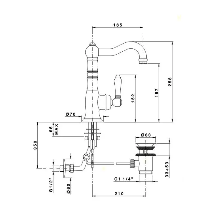 Nicolazzi Ceramica Nera Смеситель для раковины однорычажный, с донным клапаном, ручки черная керамика, цвет: хром