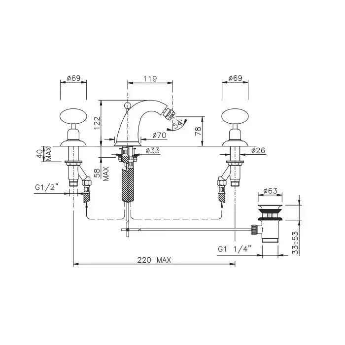 Nicolazzi Cristallo Di Rocca Смеситель для биде на 3 отверстия, излив: 119мм, цвет: хром