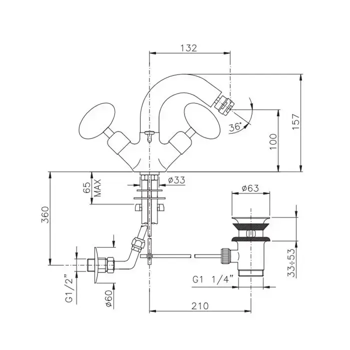 Nicolazzi Cristallo Di Rocca Смеситель для биде с 2мя ручками, с донным клапаном, излив: 132мм, цвет: хром