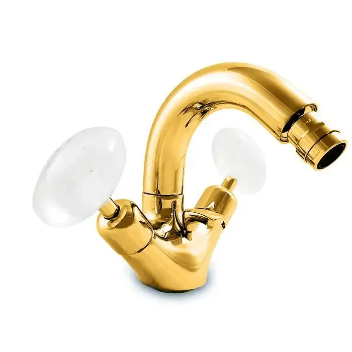 Nicolazzi Cristallo Di Rocca Смеситель для биде с 2мя ручками, с донным клапаном, излив: 132мм, цвет: золото