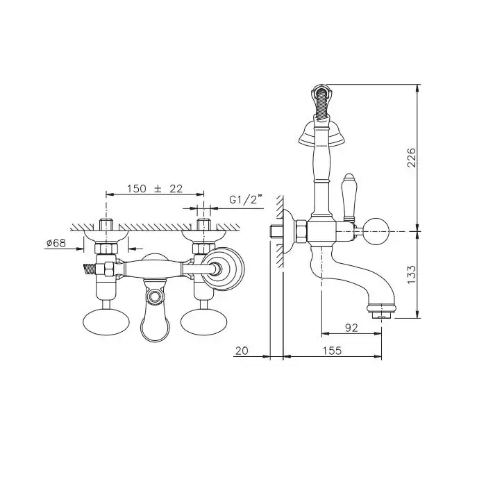 Nicolazzi Cristallo Di Rocca Смеситель для ванны с 2мя ручками, с переключателем ванна/душ, цвет: золото