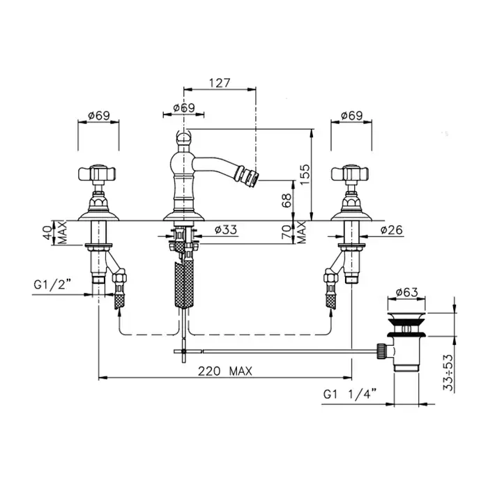 Nicolazzi Dames Anglaises Смеситель для биде, на 3 отв., с донным клапаном, цвет: бронза