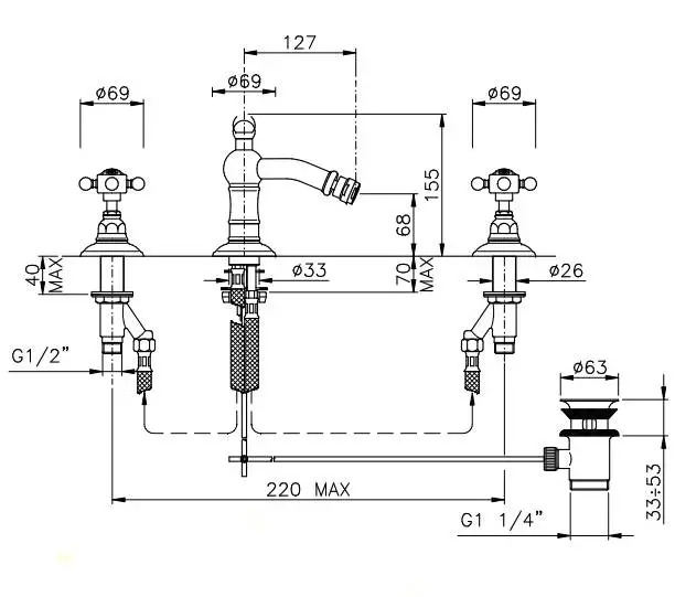 Nicolazzi Dames Anglaises Смеситель для биде на 3 отверстия, с донным клапаном, цвет: тёмная бронза