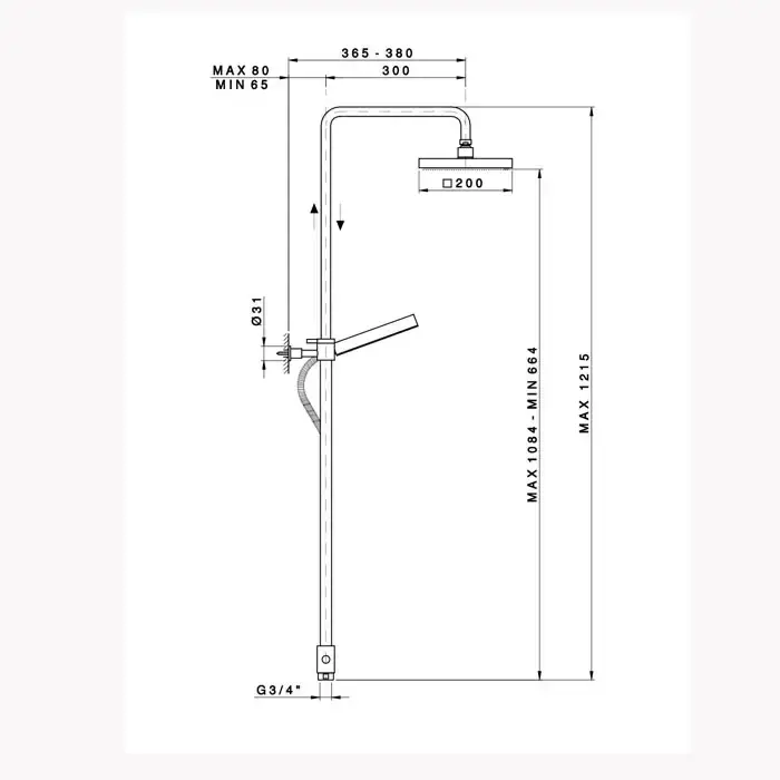 Nicolazzi Doccia Душевая стойка с квадратной лейкой 200 мм, переключателем и ручным душем цвет: хром