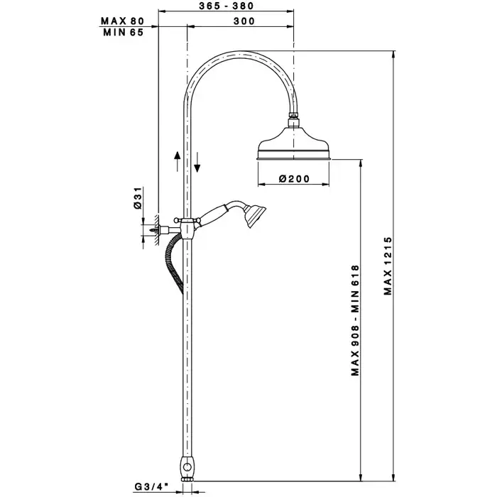 Nicolazzi Doccia Душевая стойка с верхним душем Ø 20см, переключателем и ручным душем, цвет: золото