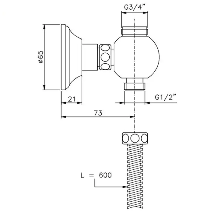Nicolazzi Doccia Крепление к стене, подключение душевой стойки сверху 3/4, лейки снизу 1/2, цвет: хром