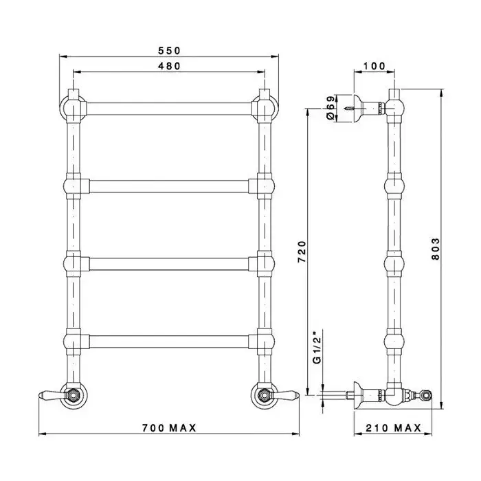 Nicolazzi El Capitan Полотенцесушитель 55(70)х80.3см., водяной, цвет: черный матовый